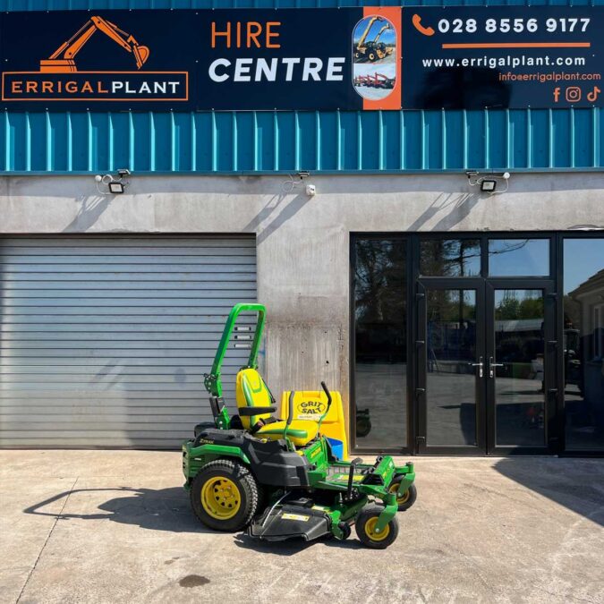 Experience power, speed, and control with the John Deere ZTrak Zero Turn Mower – designed to help you cover more ground in less time without compromising on cut quality. Its zero-turn capability allows the mower to pivot on the spot, making tight turns and obstacle navigation effortless – a must-have for landscapers and commercial groundskeeping.